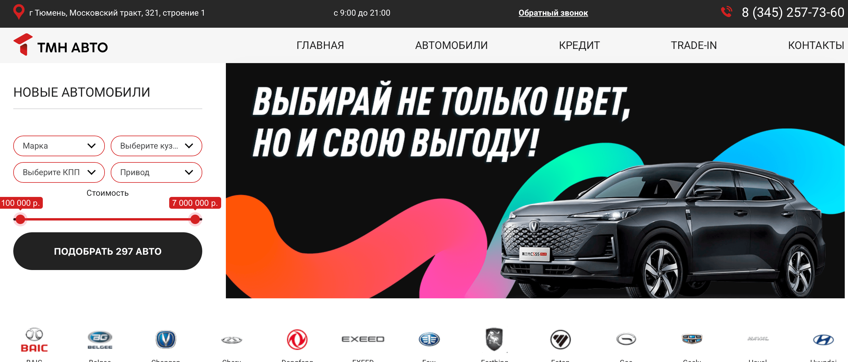 Появилась неотложная необходимость в покупке автомобиля, и я обратился в ТМН Авто в Тюмени для оформления кредита. Несмотря на то, что это был мой первый опыт, я прошла этот путь легко и без испытаний. Условия кредитования оказались отличными, а обслуживание было великолепным. Еще и в подарок полис КАСКО предложили.